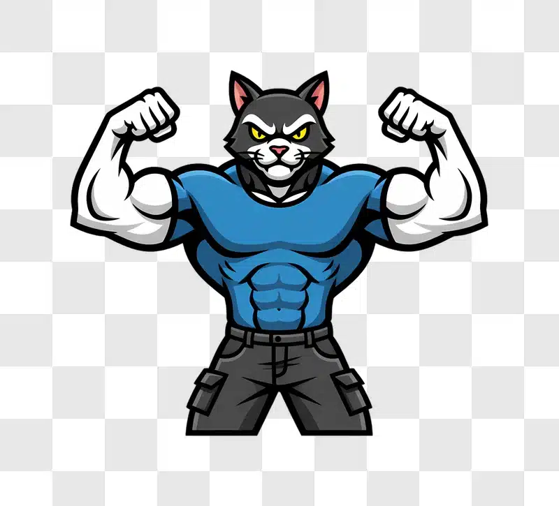 Discover our amazing free graphic featuring a strong anthropomorphic cat flexing muscles in a vibrant cartoon style. This dynamic illustration captures the essence of power and fun, perfect for adding a punch to your creative projects. The character is rendered with bold outlines and bright colors, showcasing impressive bicep definition as it strikes a powerful pose. Its confident expression and muscular physique make it an ideal choice for blog posts, website graphics, social media campaigns, t-shirt designs, or any project needing a touch of playful strength and personality. Download this eye-catching artwork to elevate your designs with a unique and memorable visual element.