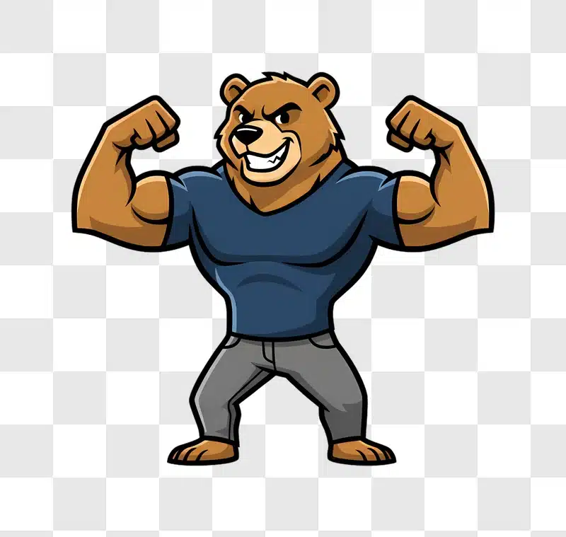 Download our free Strong Bear Mascot Flexing Muscles Cartoon Style image perfect for web design, posters, and blogs. Get your strong bear mascot today.