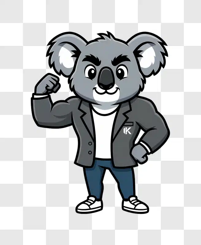 Strong Muscular Koala Mascot Flexing Bicep Wearing Blazer