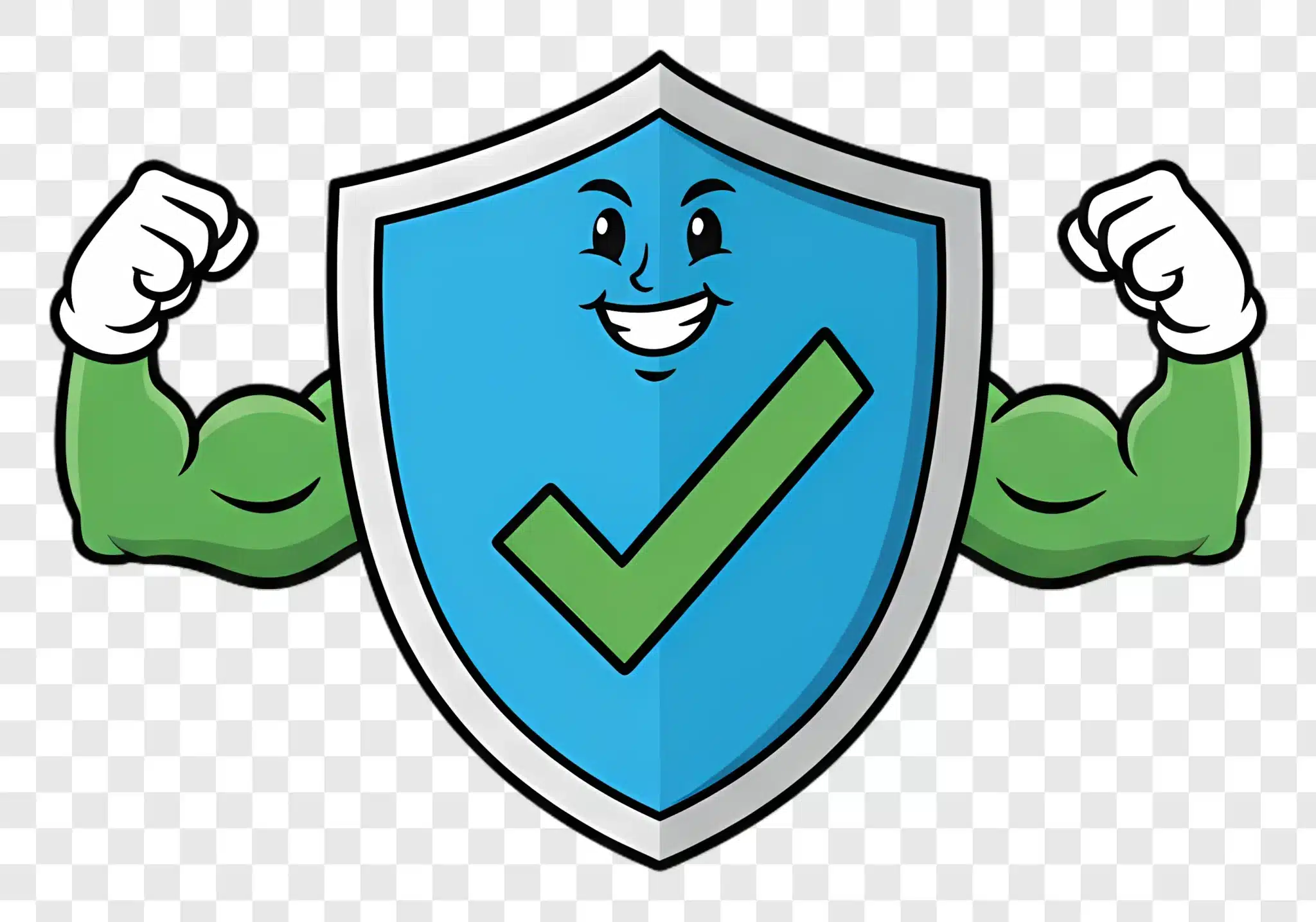 Get your free download of the Strong Shield with Check Mark Cartoon Character Flexing Biceps, a powerful symbol for your creative projects. Perfect for conveying strength and approval.