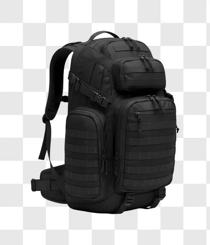 Discover the rugged appeal of a Tactical Backpack Black Military Style Outdoor Gear, presented in a striking visual that embodies preparedness and adventure. This image showcases a sleek black backpack, designed with military-inspired aesthetics, featuring durable fabric, multiple compartments, and reinforced stitching, perfect for those who appreciate functionality and a bold look. Imagine this versatile gear integrated into your next project, whether it’s for a blog post about outdoor excursions, a website promoting adventure travel, or even a compelling graphic for posters and advertisements. Its commanding presence makes it an excellent choice for adding a touch of ruggedness and reliability to any visual design, offering a strong focal point that resonates with themes of exploration and survival. Download this image to enhance your creative endeavors with a touch of tactical prowess and outdoor spirit, providing a visual narrative that speaks of resilience and readiness for any challenge.