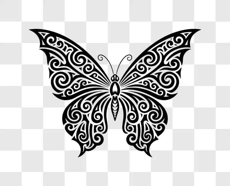 Discover the striking Tribal Butterfly Tattoo Design Black and White, perfect for free download and enhancing your creative projects with its bold, symbolic style.
