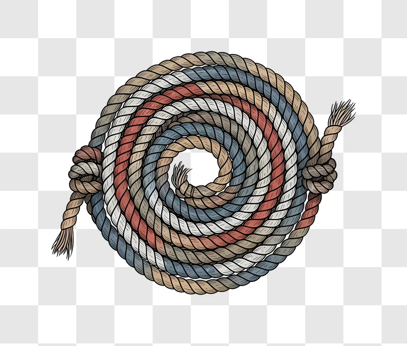 This Twisted Rope Spiral With Knots presents a visually compelling high-quality graphic, featuring a tightly coiled rope forming an intricate spiral, punctuated by strategically placed, detailed knots that add texture and complexity to the overall illustration. This free image download offers a versatile design resource, perfect for enhancing web design projects, engaging social media posts, creating distinctive posters, or adding a unique touch to branding materials and blogs. Its clear depiction and balanced composition make it an excellent addition to various creative endeavors.