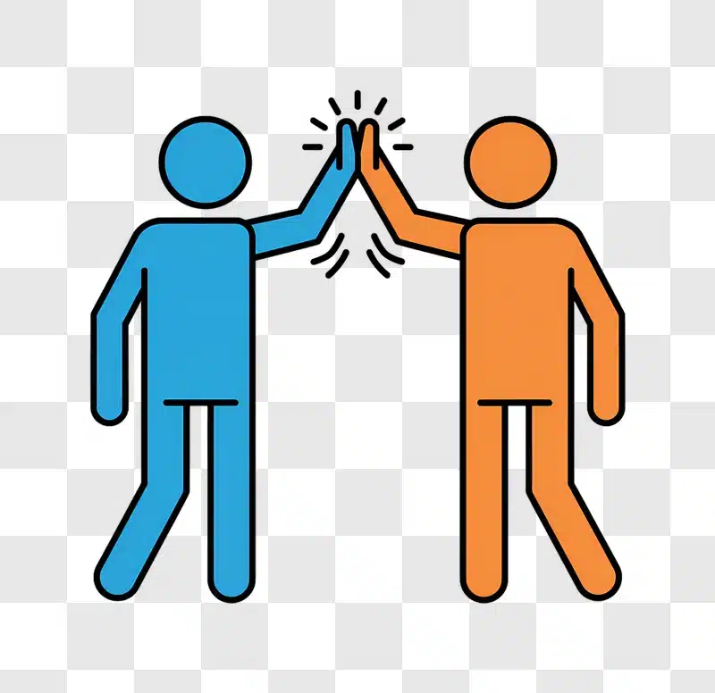 Celebrate achievements and collaborative spirit with this vibrant free image of two stick figures joyfully high-fiving, symbolizing success and effective teamwork. This charming illustration captures a moment of shared accomplishment, rendered in a clean, simple style that makes it incredibly versatile. The bold lines and clear design ensure it stands out, making it an ideal graphic for presentations, website banners, blog posts, social media updates, or even printed materials like posters and flyers that aim to convey positivity and partnership. Its universal appeal makes it perfect for any project needing to visually represent victory, unity, or the successful culmination of a joint effort.