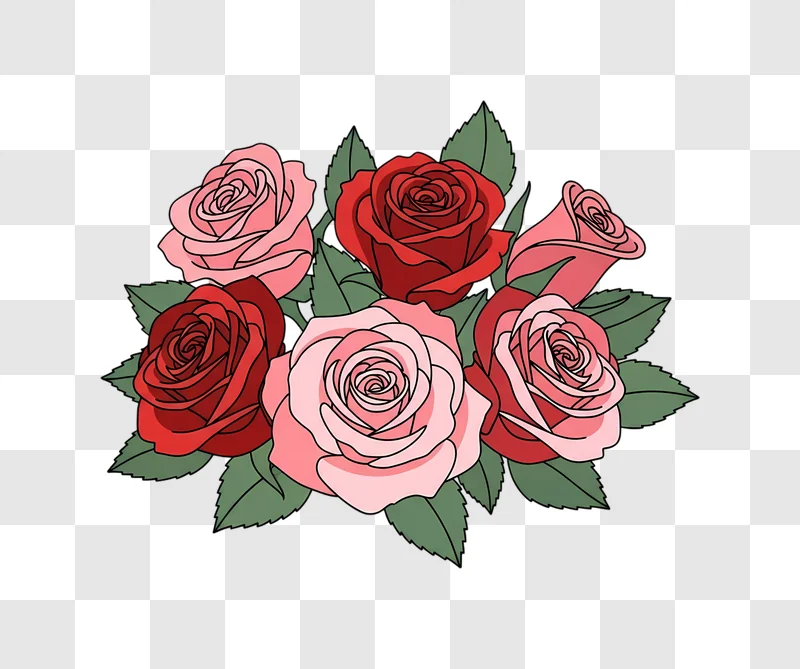 Vibrant Illustrated Roses Bouquet Transparent Background
