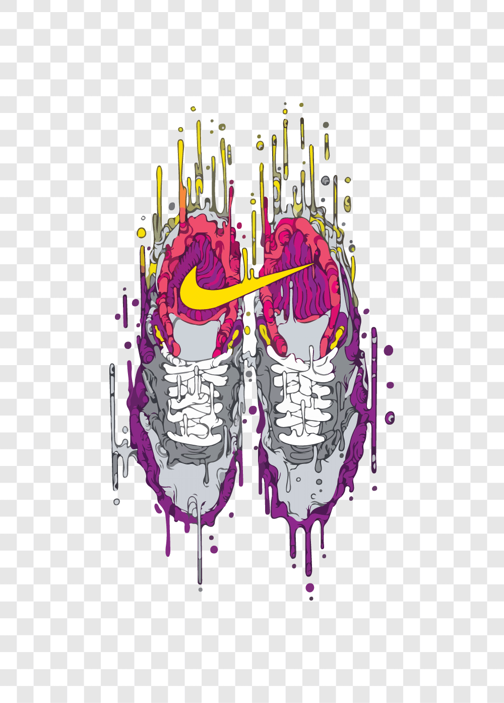 Download Vibrant Melting Nike Sneakers Art PNG for free. High-quality, transparent background, perfect for digital designs, posters, and creative projects