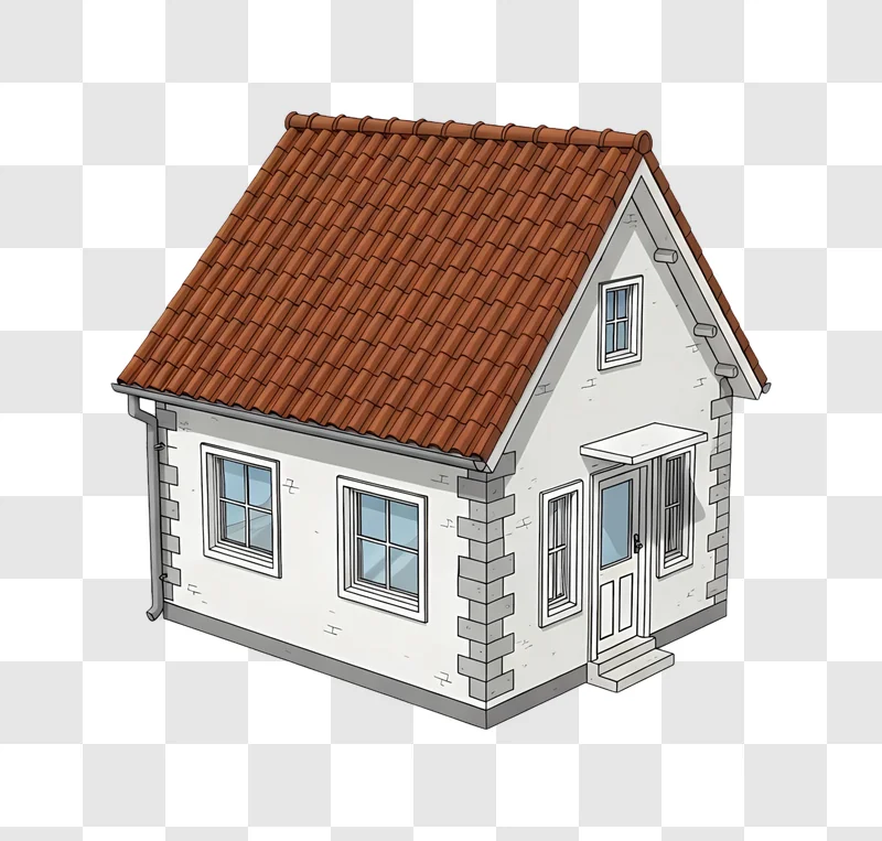 Download a free, high-quality image of a White Cartoon House With Red Tiled Roof for your next creative project.