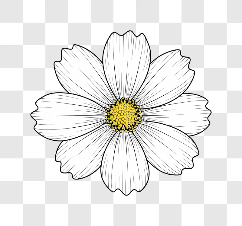 Discover the delicate beauty of this White Cosmos Flower With Yellow Center, a stunning free image perfect for your next creative project. This high-quality graphic captures the intricate petals and vibrant core of the cosmos, making it an ideal design resource. Download this illustration to enhance your web design, elevate social media posts, or add a touch of nature to your blogs. Its versatile appeal also suits posters and branding applications, offering a fresh and engaging visual element.