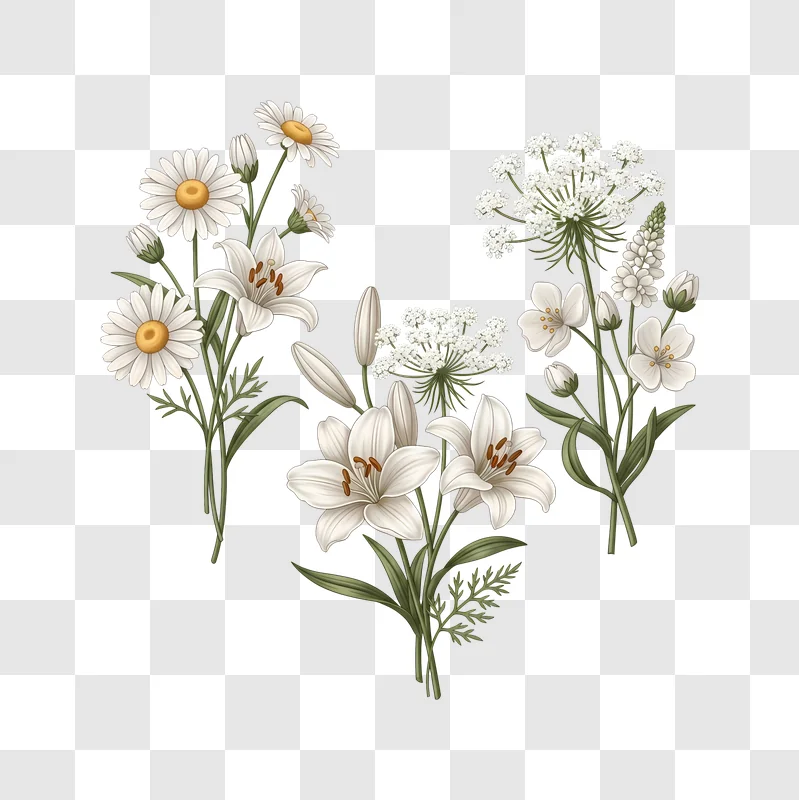 Immerse yourself in the serene elegance of White Flowers and Green Leaves, a high-quality graphic showcasing delicate blossoms framed by vibrant foliage. This free image is an ideal design resource for various projects, offering a clean and fresh aesthetic. Easily download this illustration to enhance your web design layouts, create engaging social media posts, design captivating posters, or add a touch of natural sophistication to your branding and blogs, providing a versatile visual asset for your creative needs.