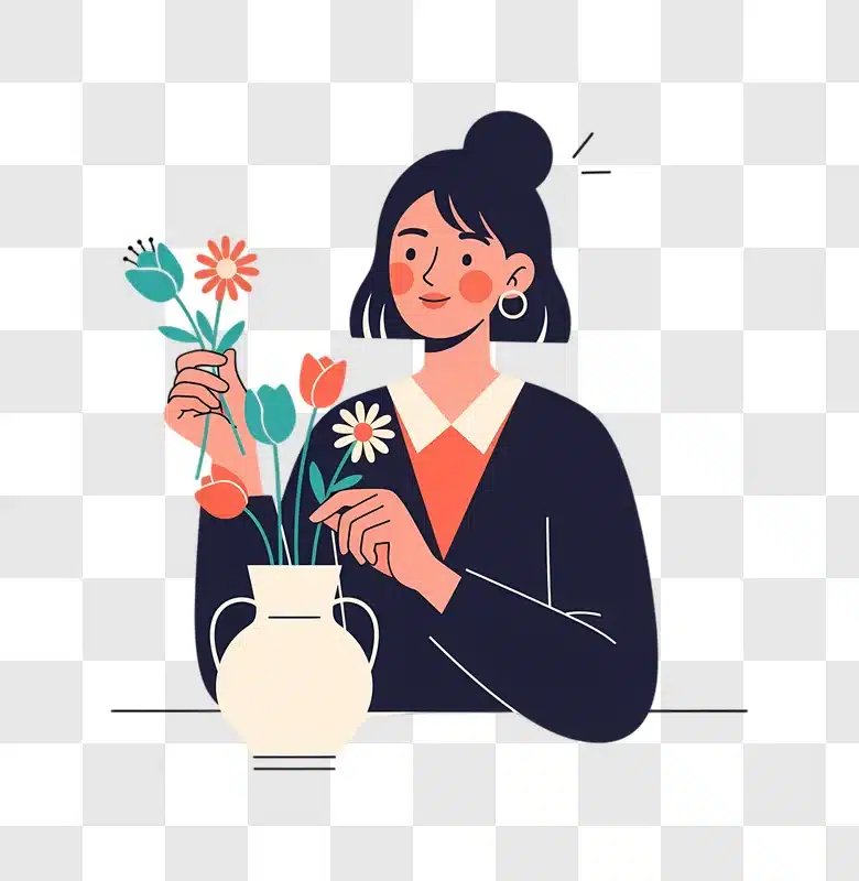 Download the lovely Woman Arranging Flowers in a Vase With a Smile for free. This serene image adds charm to any project, perfect for websites or blogs.