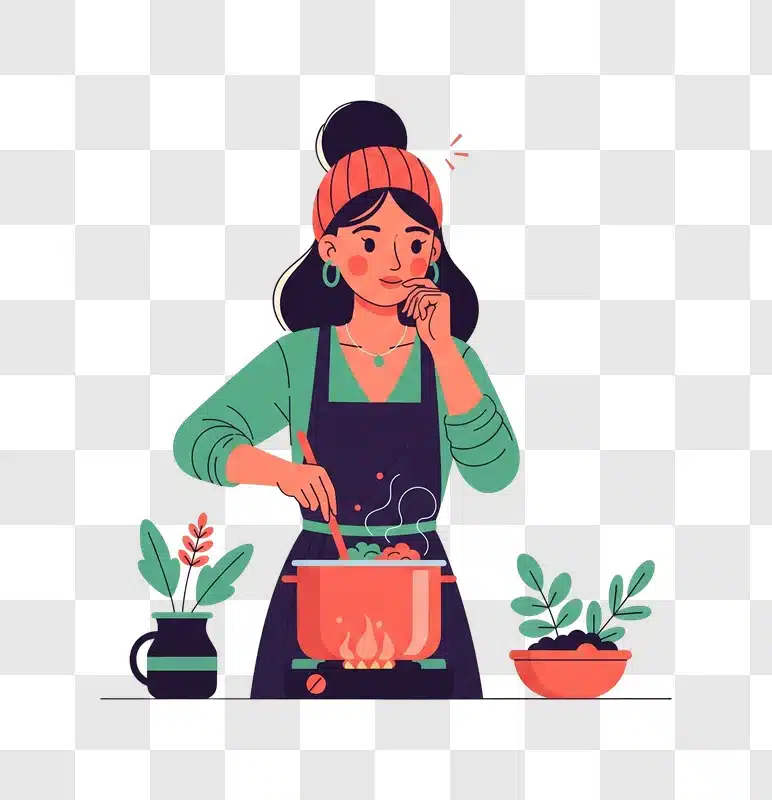 Get a free image of a woman cooking delicious food in a pot on the stove for your creative projects. High-quality visuals ready for use.
