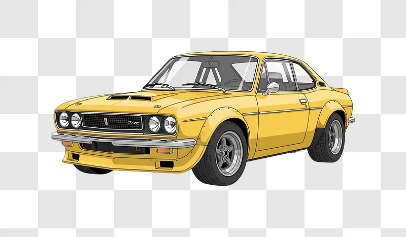 Download free Yellow Classic Coupe Widebody Anime Art. High-quality illustration perfect for web design, social media, and more.