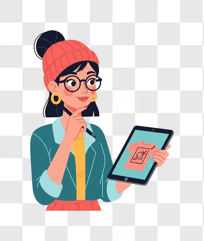 Young Woman Designer Holding a Tablet With Tshirt Design