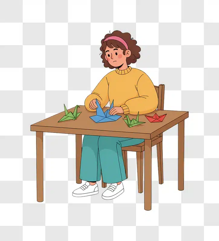 Download this serene image of a Young Woman Engaged in Origami Crafting at a Table, perfect for blogs, educational content, or creative projects. Get it free.