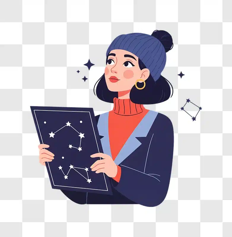 Young Woman Holding a Constellation Chart Looking up at the Night Sky