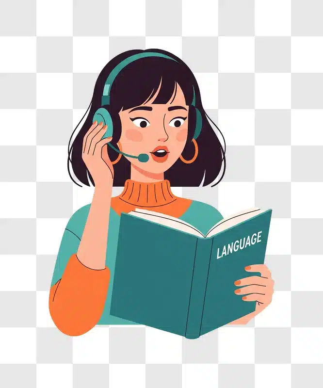 Download a free image of a Young Woman Learning Language with Book and Headphones, perfect for educational content and personal development resources.