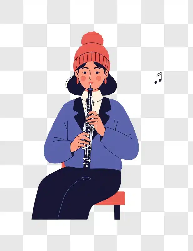 Download this serene image of a Young Woman Playing Oboe in Winter Clothing for free. Perfect for creative projects, blogs, and websites.