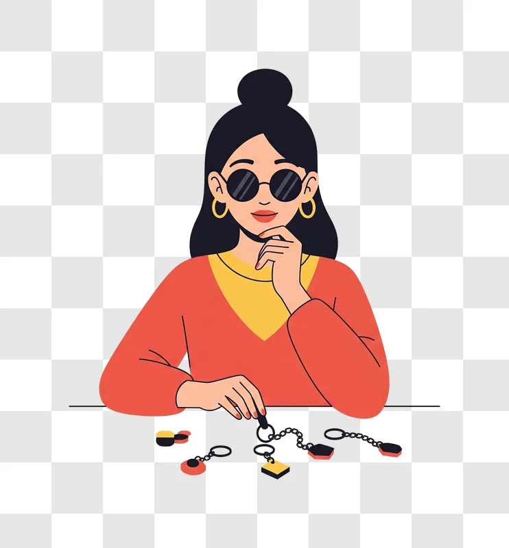 Dive into the intricate details of a moment captured, featuring a Young Woman With Sunglasses Arranging Keychains. This compelling visual offers a blend of style and meticulousness, perfect for enhancing various digital and print projects. Observe the subtle interplay of light on her sunglasses as she thoughtfully organizes her collection, creating an image rich with narrative potential. Designers can utilize this free download to add a touch of modern sophistication to lifestyle blogs, e-commerce banners for accessories, DIY craft project showcases, or even editorial content focusing on personal organization and daily routines. Its clear focus and appealing composition make it an ideal choice for social media posts, website headers, or any visual need requiring a fresh, contemporary aesthetic.
